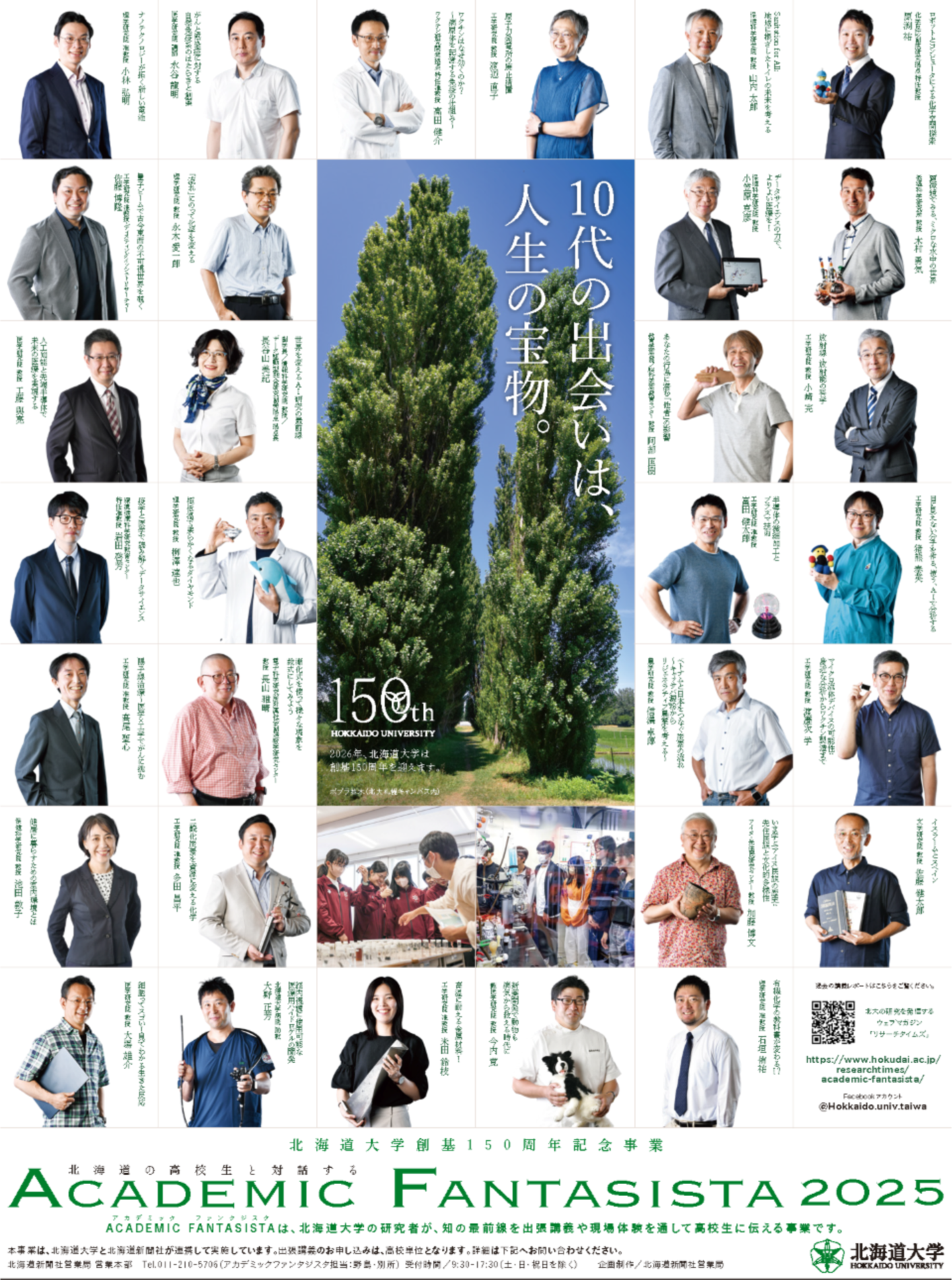 北海道大学の研究者が知の最前線を出張講義や現場体験を通して高校生などに伝える事業、"Academic Fantasista(アカデミックファンタジスタ)"。内閣府が推進する「国民との科学・技術対話」事業の一環として、北海道新聞社の協力のもと2012年から継続的に実施しています。